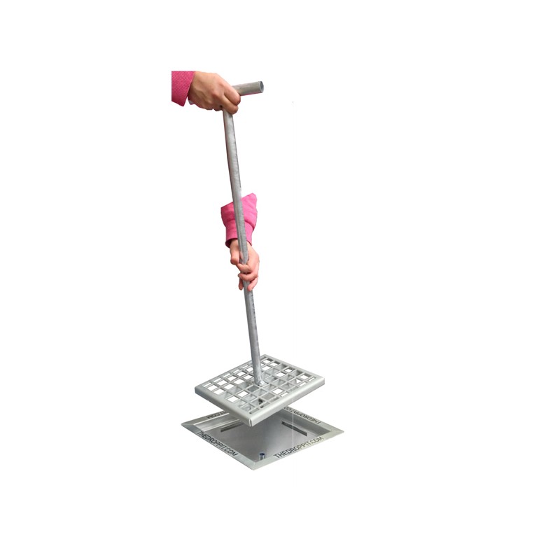 Asbaktegel van robuust corrosiebestendig verzinkt staal voorzien van rooster voor de optimale opvang van klein afval en sigarettenpeuken. Vervangt een 30x30 cm tegel. De asbaktegel is voorzien van een uniek ledigingssysteem: met behulp van de comfortsleutel (apart bestellen) kunt u gemakkelijk, snel, hygiënisch en ARBO verantwoord het rooster en de binnenbak uitnemen en legen. De open bodem en binnenbak met geperforeerde bodem zorgen voor een perfect afwateringssysteem. Door middel van de meegeleverde grondankers vandalismebestendig te borgen. The DropPit is uitermate geschikt voor bij de entree van openbare voorzieningen, scholen, ziekenhuizen, sportlocaties en bedrijfspanden.