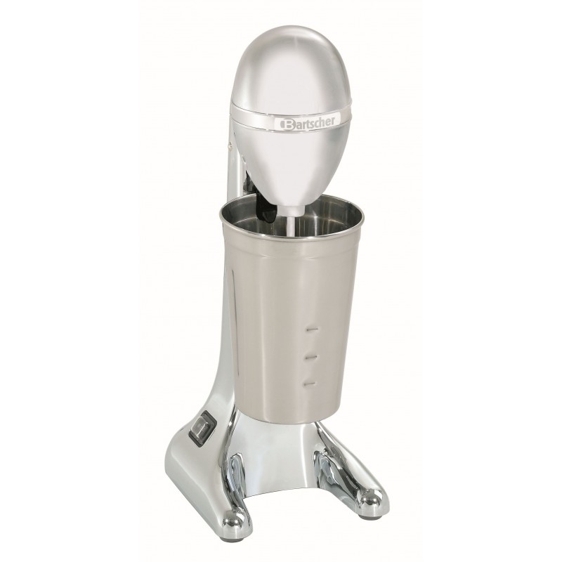 voor milkshakes en cocktails Verchroomde behuizing Mixstaaf uit roestvrij staal, mixschijf in kuststof Met zwenkkop 2 snelheden Beker uit CNS, inhoud 700 ml Beker en mixstaaf geschikt voor de vaatwasser Vermogen: 85 W / 230 V Atmetingen: B 135 x D 185 x H 365 mm Het apparaat is niet geschikt voor continu professioneel gebruik.