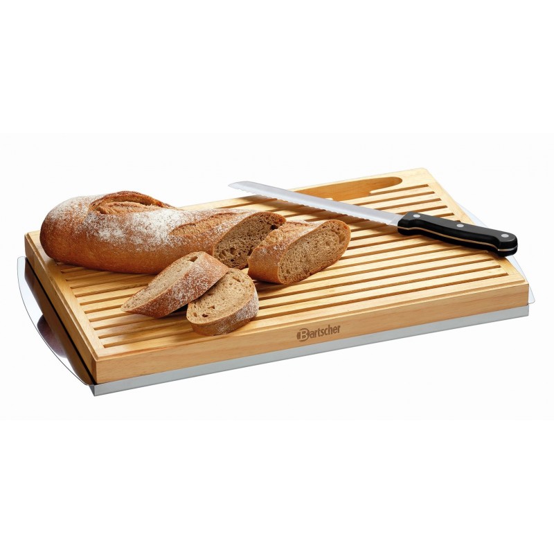 Snijdplank van hout, afneembaar - met geïntegreerde opbergruimte voor mes Broodmes van RVS met kunststofgreep Kruimelschaal van RVS Afmetingen: B 475 x D 260 x H 40 mm