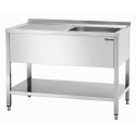 Spoeltafel met 1 spoelbak afdruipvlak en bodemschap