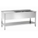 Afdruipvlak links Diepte 700 mm, RVS Scotch-Brite gepolijst, 40 mm afgerond Vierkante poten, buisvormig, 40 x 40 mm tot 50 mm in hoogte verstelbaar Voorzien van een waterkering van 40 mm hoog Afmetingen spoelbak: B 500 x D 500 x H 250 mm Afmetingen: B 1800 x D 700 x H 850-900 mm