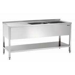 Spoeltafel met 2 spoelbakken afdruipvlak en bodemschap