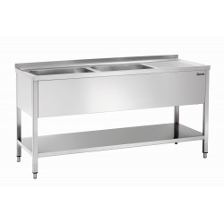 Spoeltafel met 2 spoelbakken afdruipvlak en bodemschap