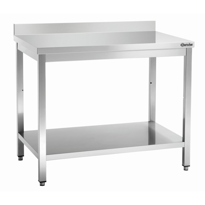 Spatrand: 100 mm RVS, Scotch-Brite gepolijst Vierkante poten 40 x 40 mm Met onderschap Waterafstotende en geluidgedempte onderplaatversterking Voorboorgat voor montage van een tussenschap Plat verpakt - eenvoudige montage Afmetingen: B 1000 x D 700 x H 850-900 mm