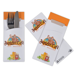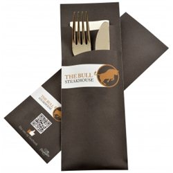 GASTRO SLEEVEDe combinatie van een stijlvolle airlaid servet met een haarscherpe full colour bedrukte band vormt een chique bestekpresentatie.De 40 x 40 cm. airlaid servet wordt op ingenieuze wijze gevouwen en het bandje wordt door ons in full colour (standaard) volledig gepersonaliseerd bedrukt op een hoogwaardige papier kwaliteit.Naast het feit dat...