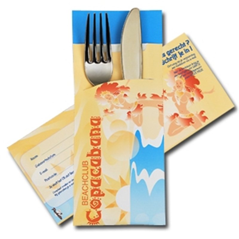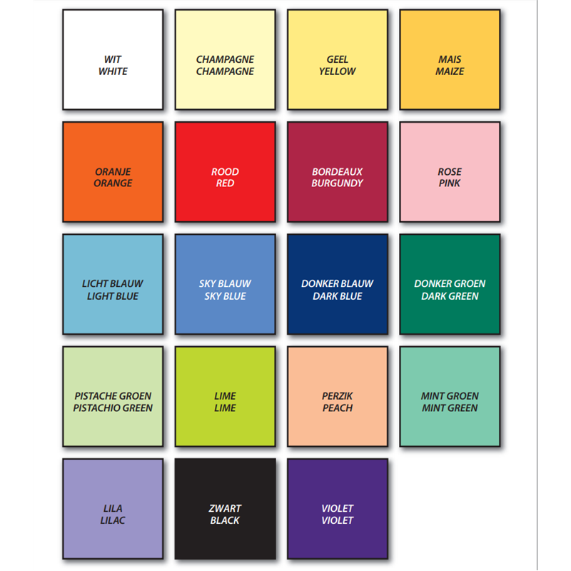 De Pochetto is uitgerust met een servet van 33x33 cm. 2-laags servet waarbij u, zonder meerkosten, kunt kiezen uit 18 verschillende kleuren.