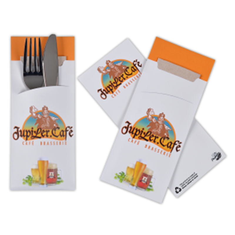 Bedrukte Pochetto-Eco (200x85mm) + 33x33 cm, 2 laags servet (prijs per 1000 stuks).
