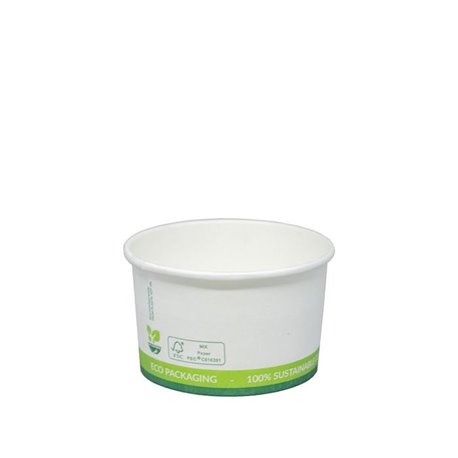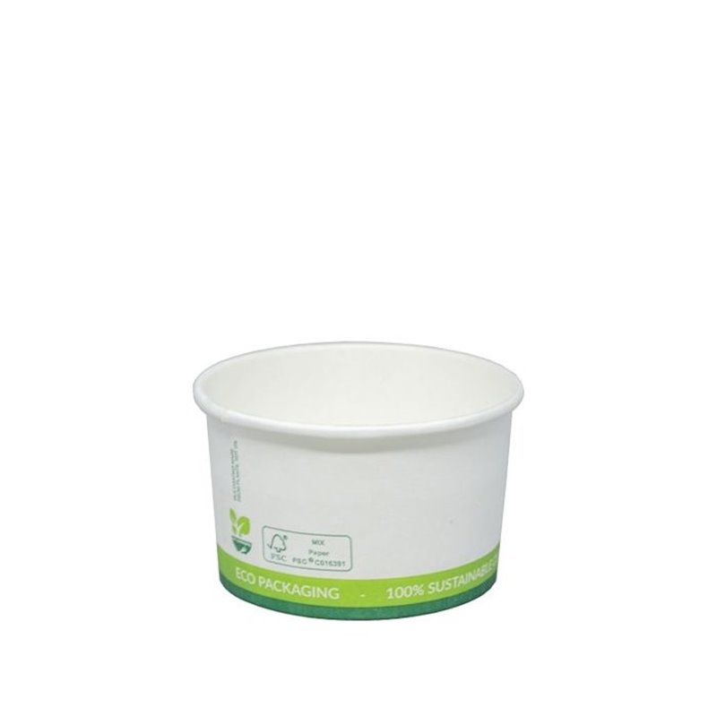 De FSC kartonnen ijsbeker 3oz/90ml met PLA coating is voornamelijk geschikt voor het serveren van een bolletje ijs. Combineer de duurzame ijsbekers met onze afbreekbare ijslepels.