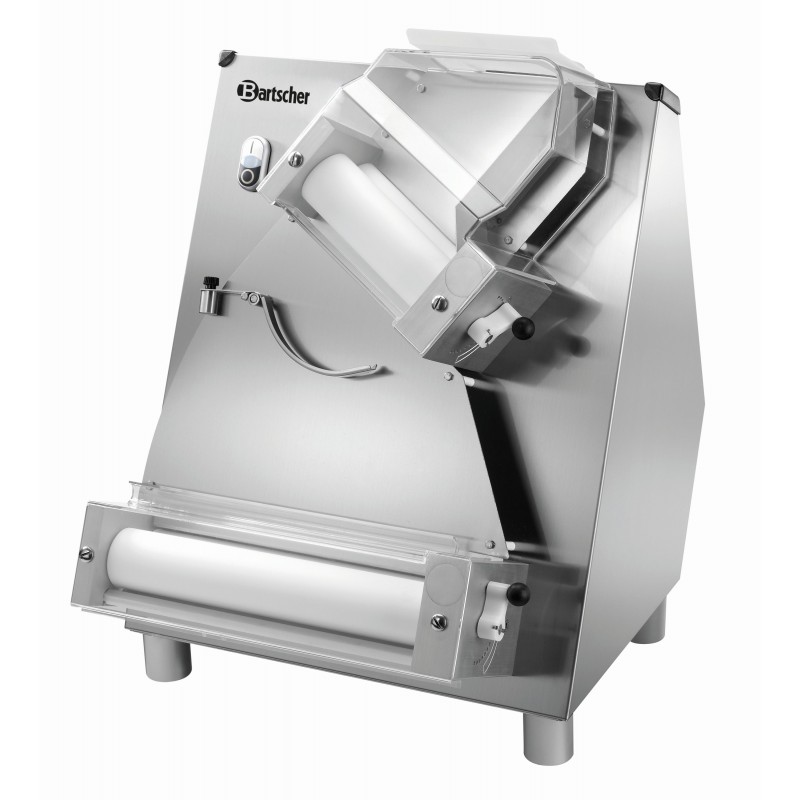 Materiaal: CNS 18/10 Voor deegdoorsnede van max. 300 mm Rollengte: 320 mm Instelling deegdikte: 0,3 - 5,5 mm Deeggewicht: 80 - 210 g Vermogen: 0,37 kW / 230 V 50 Hz Afmetingen: B 490 x D 510 x H 655 mm