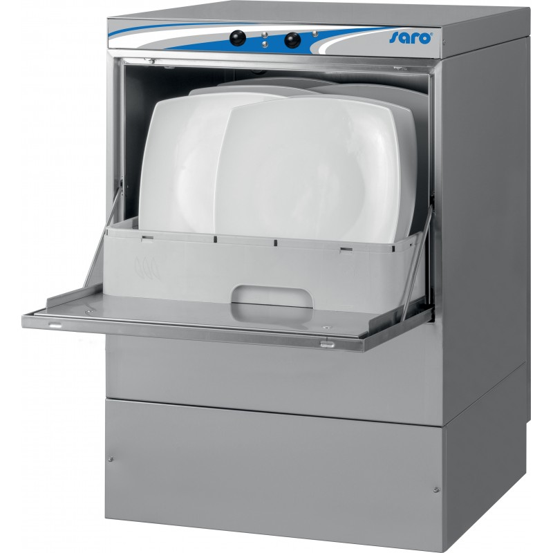• Materiaal: (behuizing en wasarm) roestvrij staal • Dubbelwandige deur, hoogte 360 mm • 1 glazen mandje inbegrepen, W 500 x D 500 x H 100 mm • 1 bestekmandje inbegrepen, W 110 x D 110 x H 130 mm • 1 plaatlade inclusief, W 500 x D 500 x H 100 mm • Drukreductie • Detergentpomp, hydraulische spoelpomp, afvoerpomp en vuilfilter • Max. plaat hoogte: ca. 335 mm • Max. glazen hoogte: ca. 325 mm • Cyclus: 120 Seconden • Ketel: capaciteit 6 liter, verwarmingselement: 3,0 kW • Tank: capaciteit 35 liter, verwarmingselement: 2,8 kW