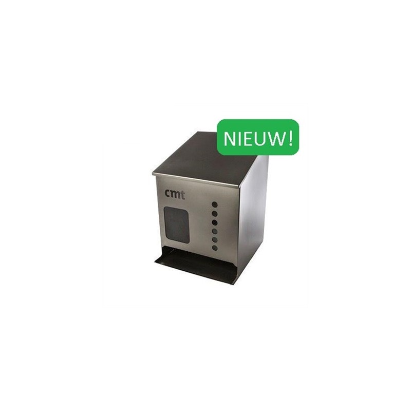 Rvs bezoekerjas-coveralldispenser, bovenklep, uitgiftegleuf, 30x34,8x43,8cm