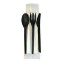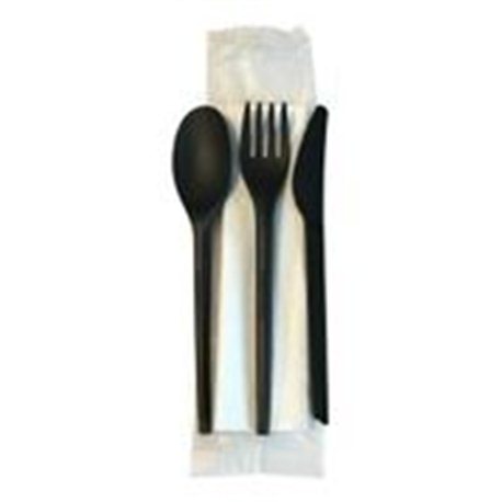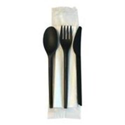 CPLA bestekset zwart mes/vork/lepel/servet 2-ply