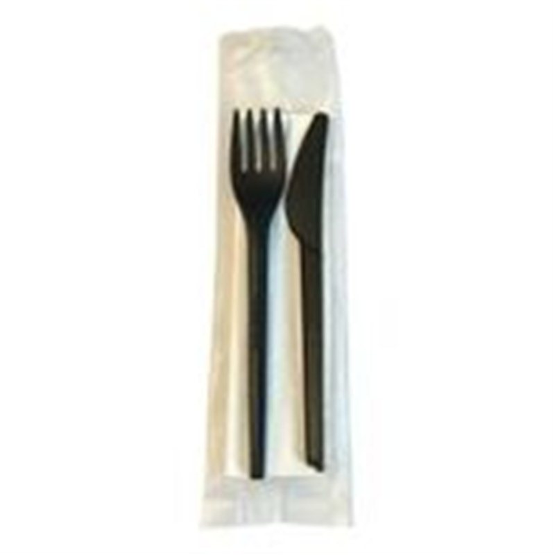 CPLA bestekset zwart mes/vork/servet 2-ply 250 stuks