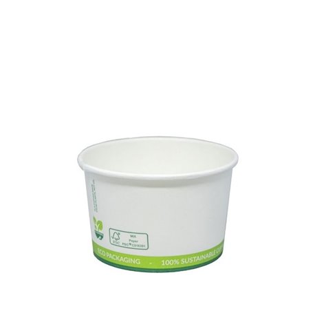 De FSC kartonnen ijsbeker 4oz/120ml met PLA coating is voornamelijk geschikt voor het serveren van een of twee bolletjes ijs. Combineer de duurzame ijsbekers met onze afbreekbare ijslepels.