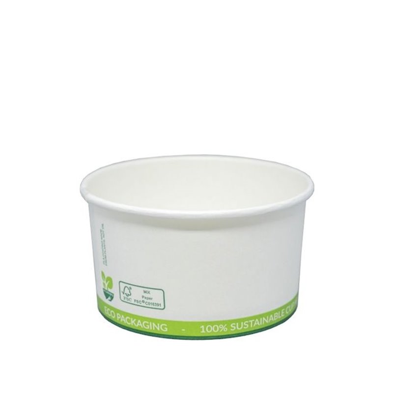 De FSC kartonnen ijsbeker 6oz/180ml met PLA coating is voornamelijk geschikt voor het serveren van twee of drie bolletjes ijs of een yoghurt. Combineer de duurzame ijsbekers met onze afbreekbare ijslepels en deksels.