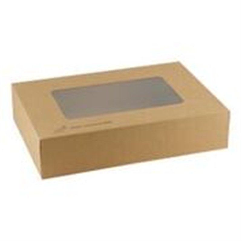 Kraft cateringdoos met PLA venster 36x25x8cm 5x10 (50 stuks)