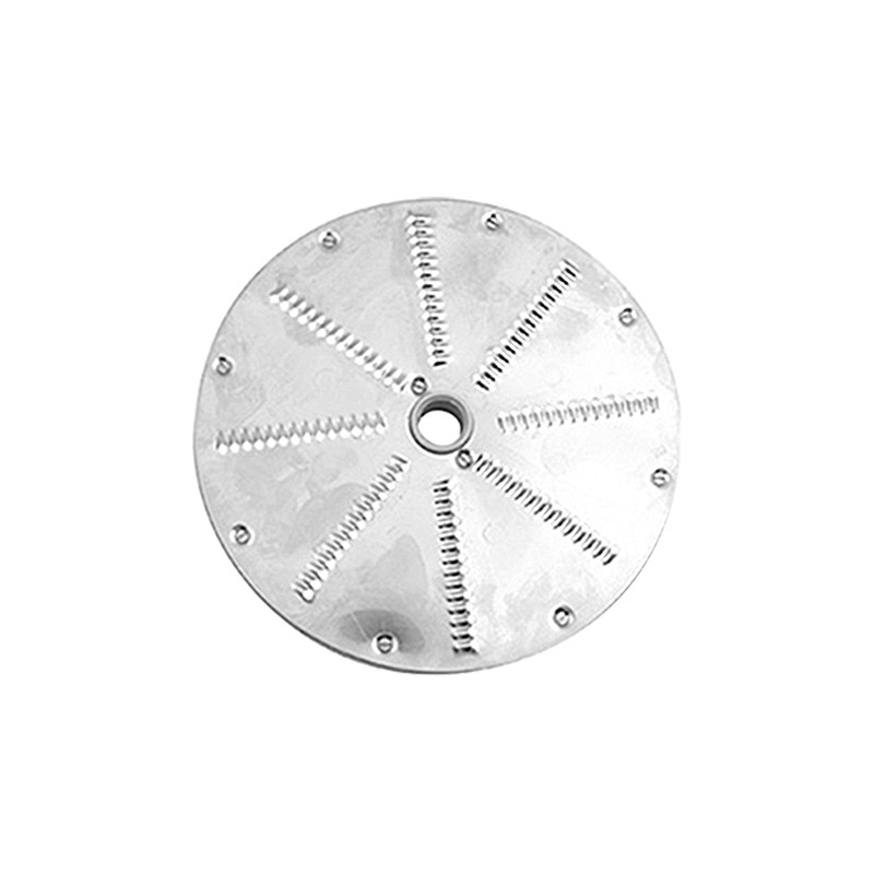 Roestvrijstalen behuizing en vulopening van speciale kunststof legering, speciale opening voor grotere en kleinere stukken. De schijven zijn van speciale roestvrije voedsel-veilige legering, geharde roestvrijstalen messen, met eenvoudige bajonetsluiting, schijven afzonderlijk verkrijgbaar. Snijdt plakjes, schijven, blokjes en frites en raspt noten, groente, kaas, etc. Capaciteit: ca. 200 kg/p.u. gesneden materiaal - 160 kg/p.u. geraspt materiaal