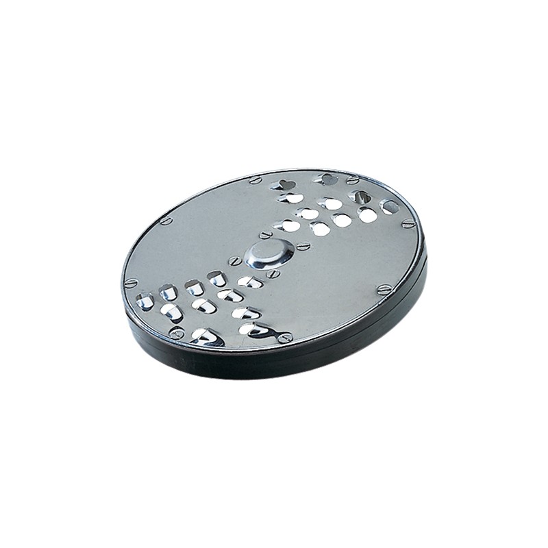 Uit gegoten aluminium. Snijdt plakjes, staafjes en raspt noten, groente, kaas etc. Door het geheel wegklapbare (ook verwijderbare) bovenstuk is de machine vlug en goed te reinigen. Voorzien van diverse veiligheidssystemen en verlichte hoofdschakelaar.@@De groentesnijder wordt compleet met drie schijven geleverd t.w. een plakkenschijf van 3 mm een raspschijf van 3 mm en een staafjesschijf van 8x8 mm