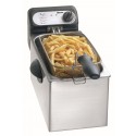 Behuizing en deksel uit edelstaal, schakelkast uit kunststof 1 bak, 1 mand, inhoud: 3 liter Vermogen: 2,0 kW / 1 NAC 230 V 50 Hz Afmetingen: B 220 x D 400 x H 240 mm Veiligheidsthermostaat (beveiliging tegen oververhitting) Het apparaat is niet geschikt voor professioneel gebruik.
