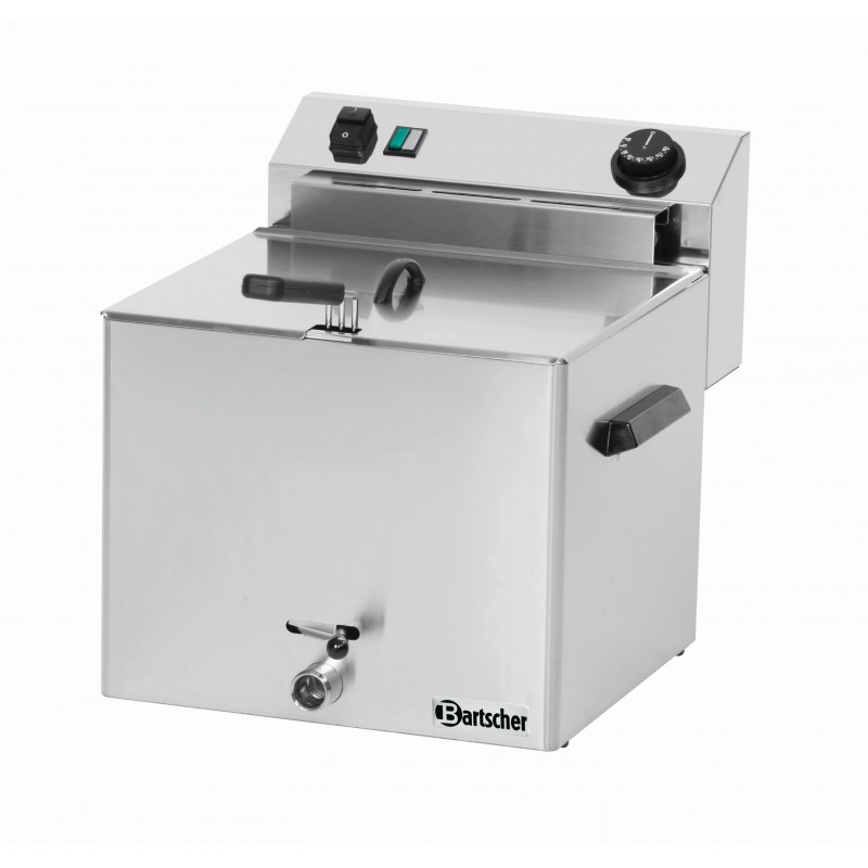 Behuizing, deksel en schakelpaneel van CNS 1 binnenpan, 1 frituurmand, Inhoud: 10 liter Mandmaat: B 300 x D 240 x H 120 mm Roestvrij stalen verwarmingselementen Koudezone Veiligheidsthermostaat (beveiliging tegen oververhitting) Vermogen: 8,1 kW / 400 V 50-60 Hz 3 NAC Afmetingen: B 390 x D 450 x H 375 mm