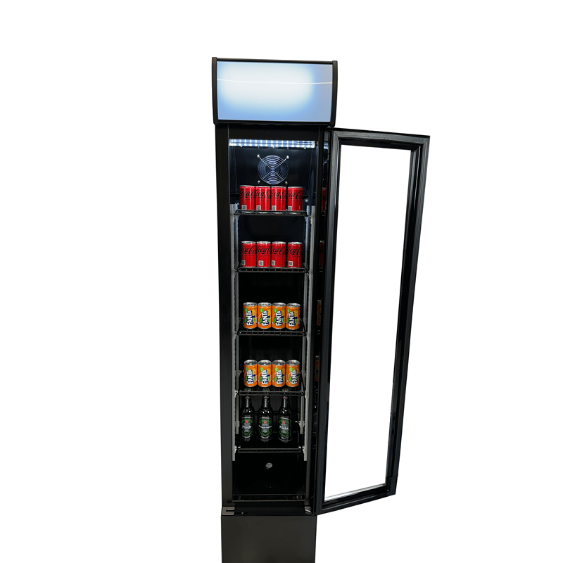 Deze compacte koelkast is de perfecte oplossing voor professionele horecagelegenheden met beperkte ruimte, maar ook ideaal voor thuisgebruik of kleinere keukens. Het strakke ontwerp zorgt voor een moderne uitstraling die zich moeiteloos aanpast aan elke omgeving. Het statische koelsysteem met ventilator zorgt ervoor dat de temperatuur gelijkmatig wordt verdeeld, zodat je dranken optimaal gekoeld blijven. Dankzij de ingebouwde LED-verlichting wordt de inhoud op een energiezuinige manier verlicht, zodat je producten altijd goed zichtbaar zijn. De afmetingen zijn 360x422x1880 mm (LxBxH) - verbruik 0.14 kW - inhoud 105 liter - temp. +2/+10ºC - gewicht 55 kg.