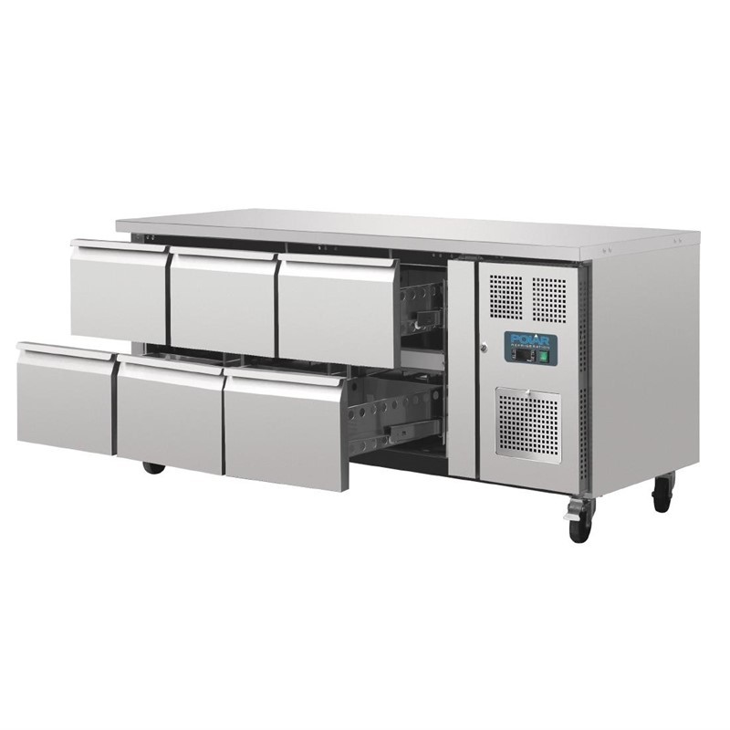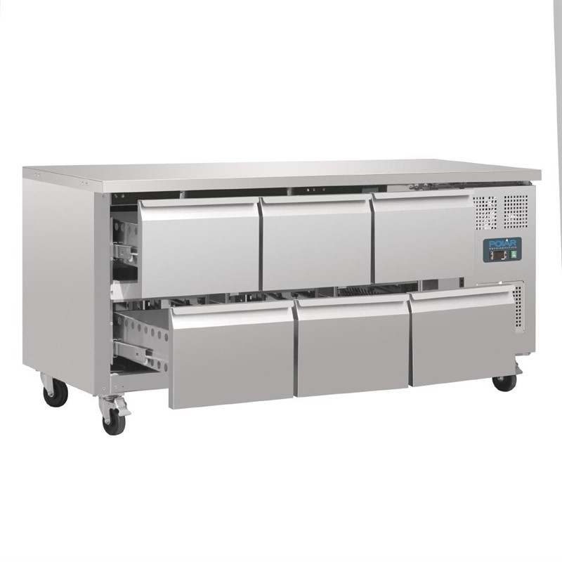 Polar U-serie geventileerde gekoelde GN werkbank met 6 laden