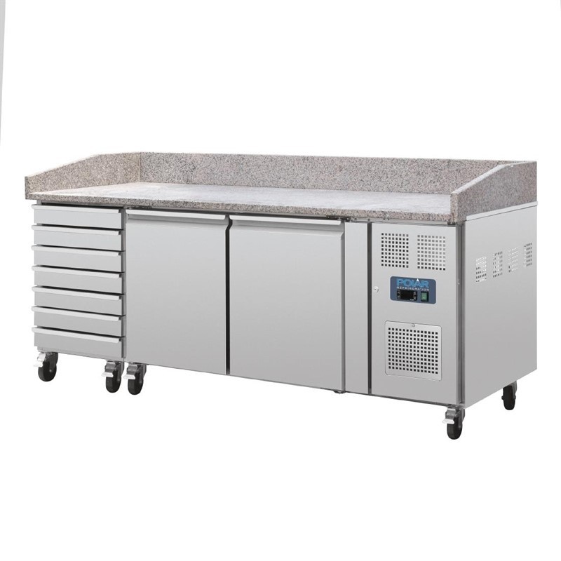 Polar U-serie pizza werkbank met granieten blad en deeglades 290L