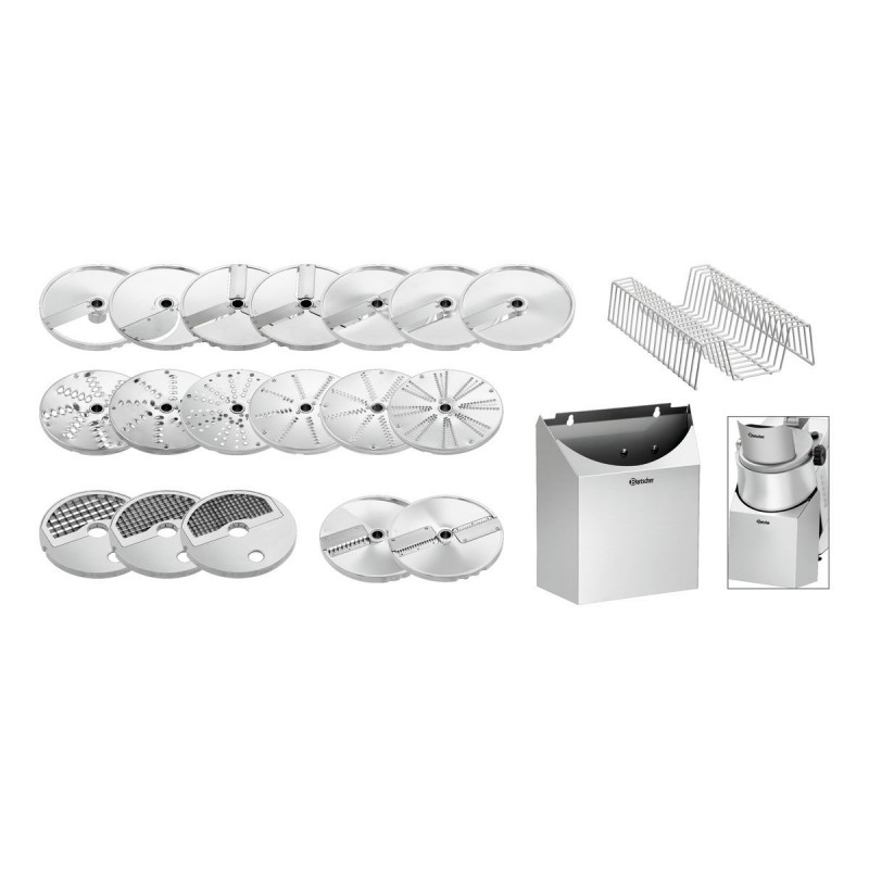 Groenten, fruit of kaas - krachtige groente-snijmachine inclusief opvangbak, stopper en een extra grote vulschacht. Aanvullende 15 snijschijven