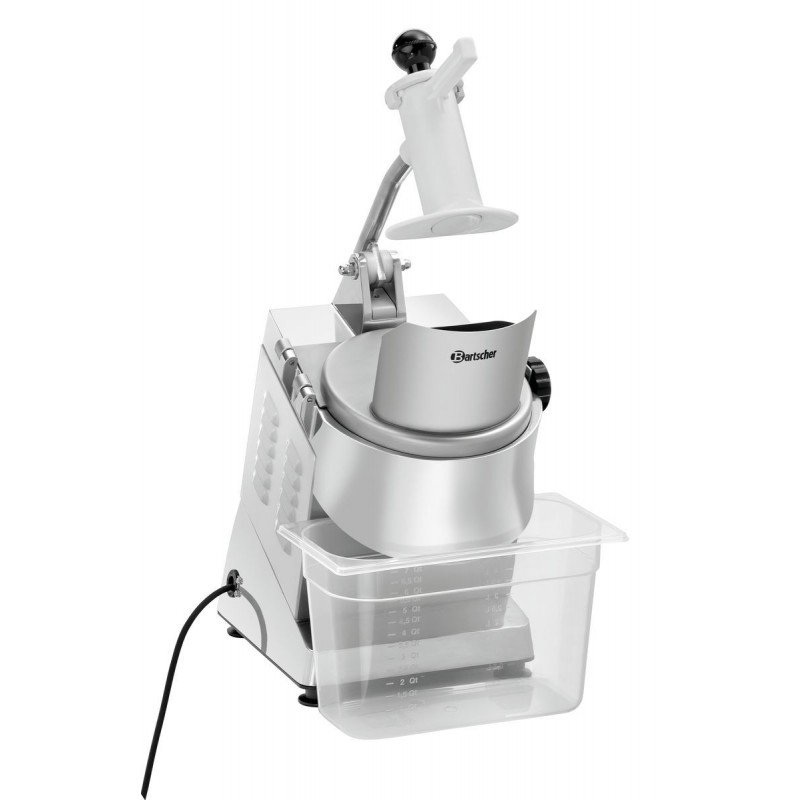 Krachtige groentesnijder met extra grote vulschacht voor de verwerking van groenten, fruit of kaas.