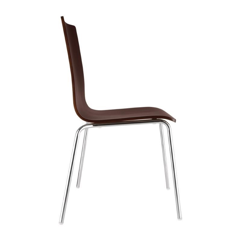 Verchroomd stalen frame. Beukenfineer zitting. Zithoogte: 46cm. Stapelbaar.Ontvanger :