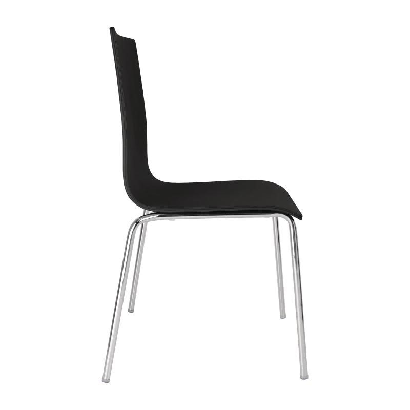 Verchroomd stalen frame. Beukenfineer zitting. Zithoogte: 46cm. Stapelbaar.Ontvanger :