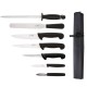 | Overige Kenmerken | 20,5cm koksmes, 20,5cm paletmes, 15cm fileermes, 12,5cm uitbeenmes, 20,5cm paletmes - Hygiplas, 25,5cm aanzetstaal - Vogue, Messen zijn eenvoudig te slijpen en vaatwasmachinebestendig, In een duurzaam nylon foedraal, |
