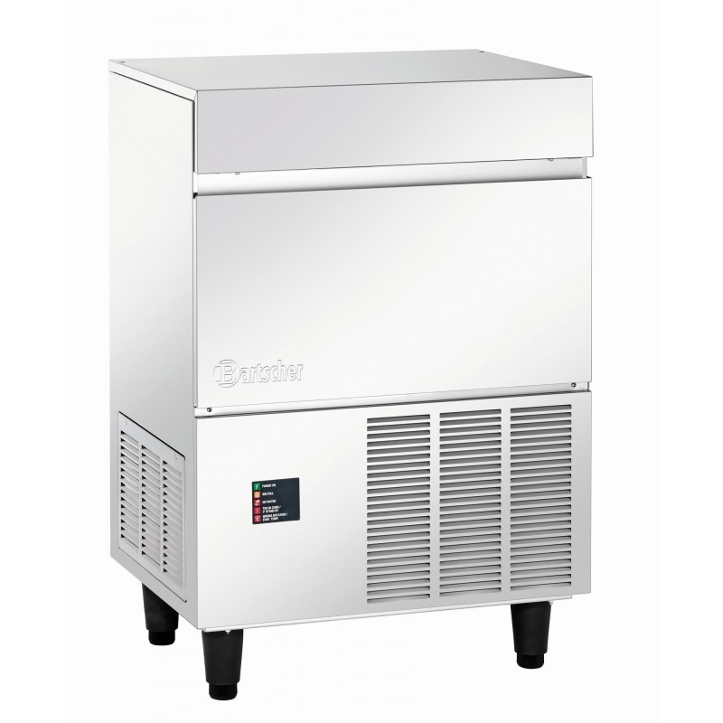 Apparatuur van CNS 18/10 Koelmiddel R134a Productie capaciteit: 120 kg/24 uur Voorraadcontainer: 27 kg Luchtgekoeld (Aan alle zijden ongeveer 15 cm vrijlaten) Wateraansluiting 3/4" Waterafvoer Ø 20 mm Vermogen: 0,49 kW / 230 V 50 Hz 1 NAC Afmetingen: B 680 x D 510 x H 1000-1010 mm