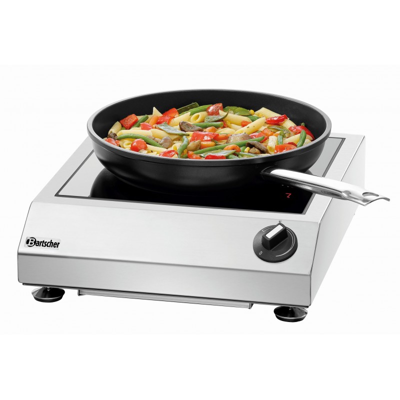Materiaal: CNS 18/10 Kookplaat: Schott Ceran, B 290 x D 290 mm 1 kookplaat Diameter kookplaat: 220 mm Vermogensniveaus: 9 Digitale aflezing Panherkenning Beveiliging tegen oververhitting Vermogen: 3,5 kW / 230 V 50 Hz Afmetingen: B 340 x D 400 x H 110 mm