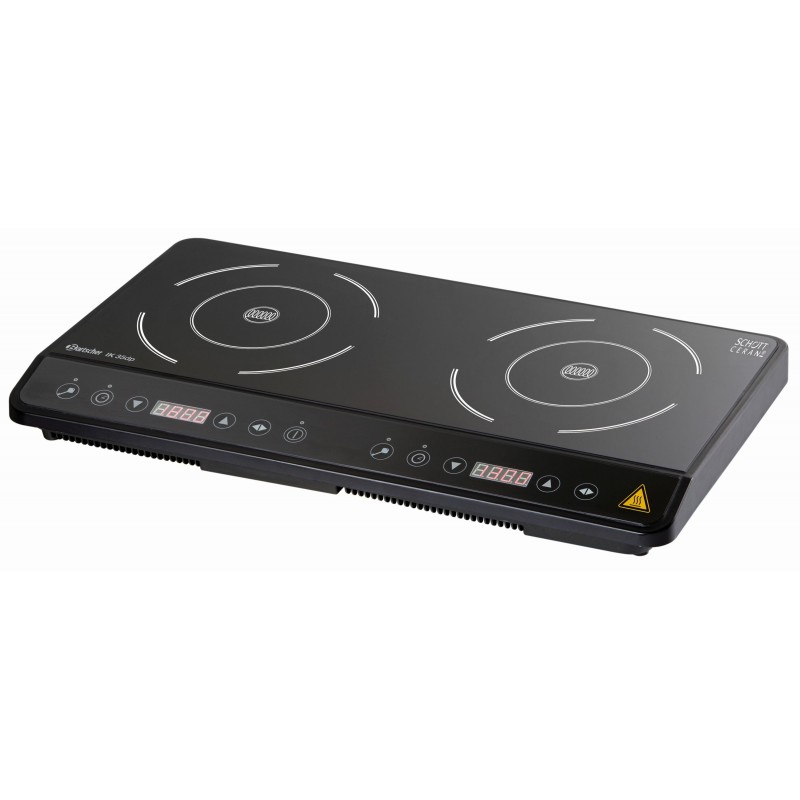 met 2 kookvlakken apart instelbaar Kookvlak van Schott Ceran, behuizing kunststof Digitale aflezing Digitale tijdschakelklok Tijdinstelling tot 180 minuten, met 5 minuten intervallen 10 vermogensniveaus (500 - 2000 W / 600 - 1500 W) 10-traps temperatuurinstelling Temperatuurbereik: 60 °C tot 240 °C, met 20 °C intervallen Vermogen: 3,5 kW / 230 V Electronische beveiliging tegen oververhitting Afmetingen: B 605 x D 360 x H 60 mm Het apparaat is niet geschikt voor professioneel gebruik.