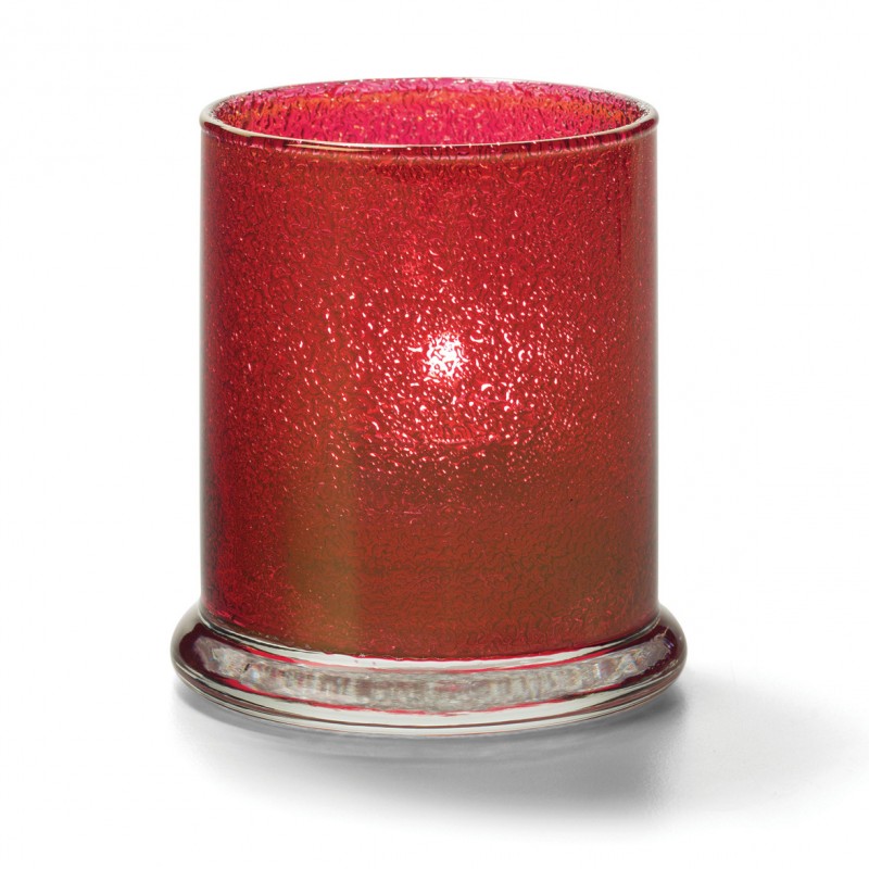 Cilinder glas breed onderstel rood 7,6 x 9 cm (per 12 stuk)