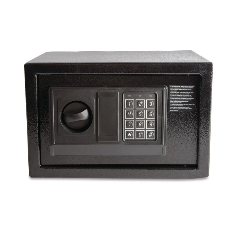 | Overige Kenmerken | Met 2 noodsleutels, Wand- of vloermontage, Toegankelijk d.m.v. gebruikers- en mastercode, Met informatiepaneel voor gasten, Inclusief 4x AA batterijen en bevestigingen, |