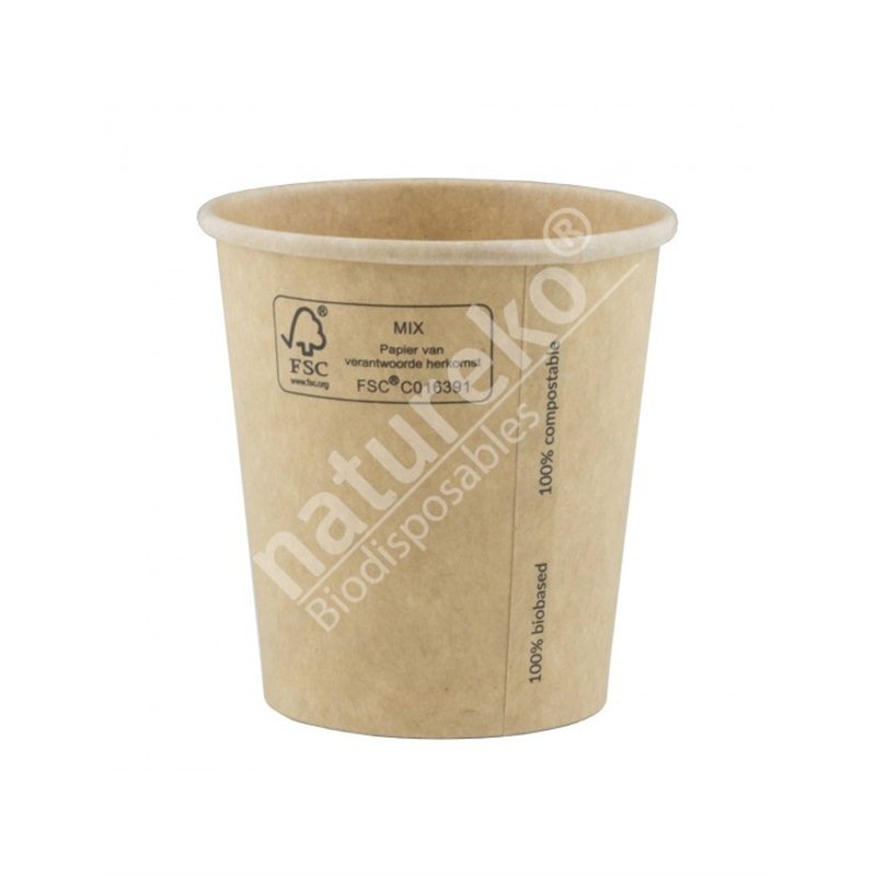 Onze FSC kraft bekers zijn voedselveilig, smaakneutraal en vochtbestendig. Bovendien zijn onze bekers 100% composteerbaar.