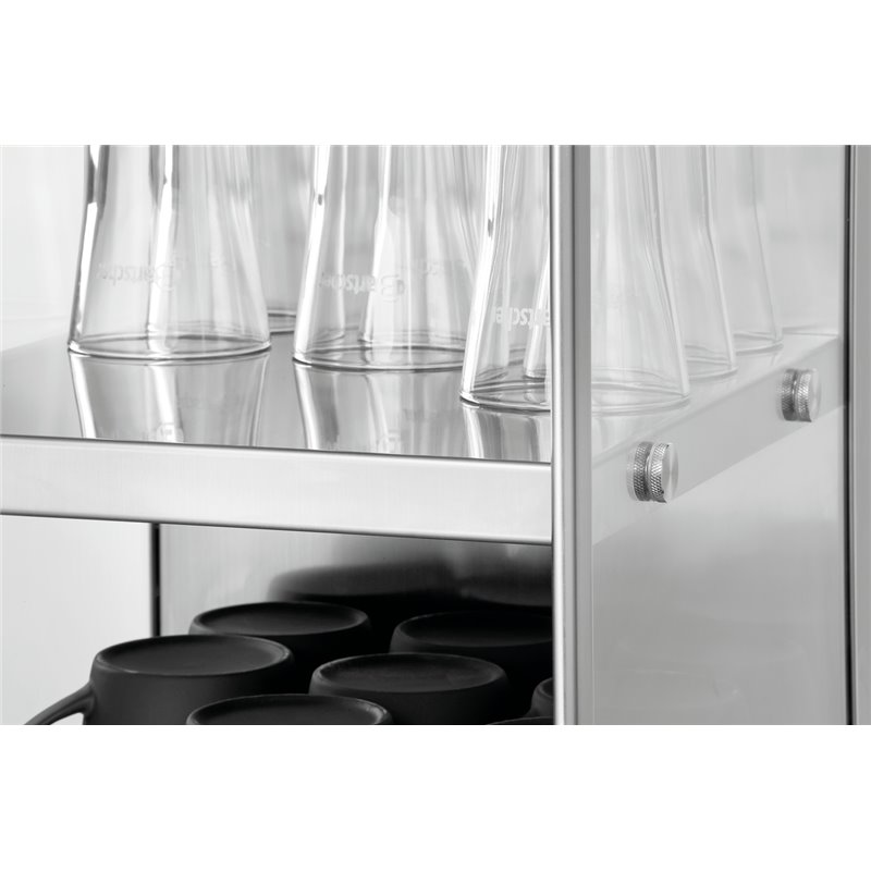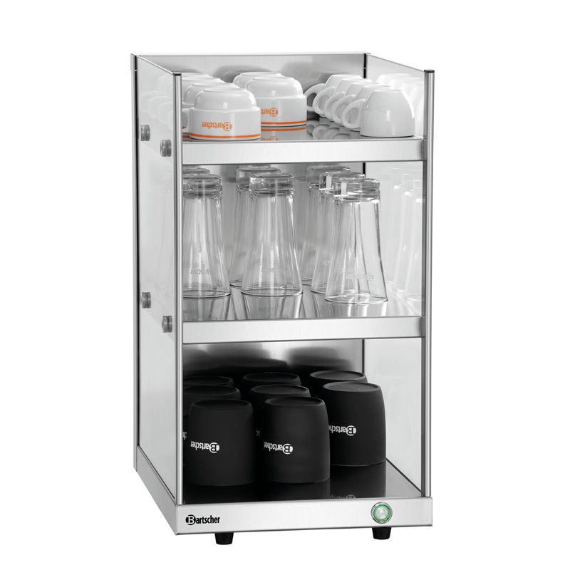 Op de 3 verwarmde plateaus kunnen tot 103 kopjes op de perfecte kopjestemperatuur worden gebracht. In de elegante kopjesverwarmer is plaats voor koffiemokken, espressokopjes of latte macchiatoglazen. Na eerst de temperatuur in te stellen gebeurt de bediening eenvoudig met een druk op de knop.