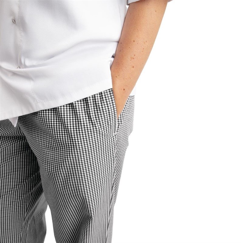 Whites Easyfit Teflon unisex koksbroek met kleine ruit zwart-wit S