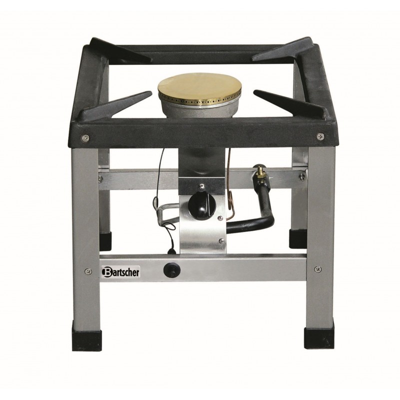 Materiaal CNS 18/10 Zwart gietijzeren pannendrager Sterke brander met piëzo-ontsteking, Beveiligd Vermogen: 7,0 kW Afmetingen: B 400 x D 400 x H 390 mm