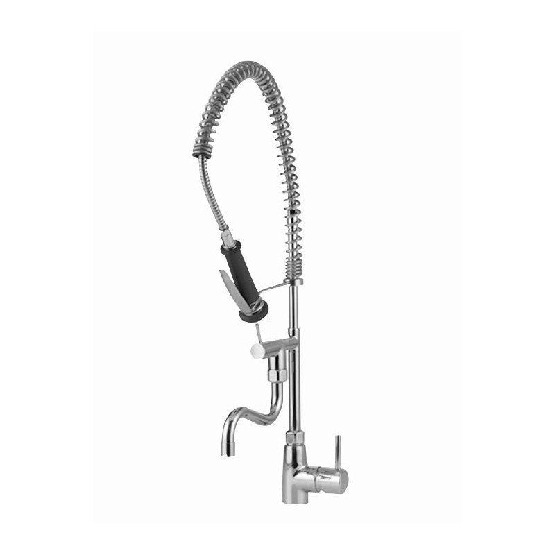 met voorspoeldouche Slang uit CNS 18/10 Koperen pijpaansluiting Ø 15 mm Bevestiging met aansluitstuk met schroefdraad Doorsnede voor de spoeltafel Ø 42 mm Zwenkt uit tot 180° Regelbare waterstraal mondstuk M 22 Waterstraal 3 bar: Douchefunctie 18 l/min. Regelbare waterstraal 40 l/min.