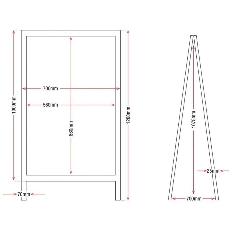 | Overige Kenmerken | Met ketting voor optimale positionering, Gebruik reiniger Y994 om stift eenvoudig van de borden te verwijderen, Met rubberen pootjes ter bescherming tegen waterschade, Slijtvast, melamine krijtbord, Geheel gelakt, waterbestendig frame, |