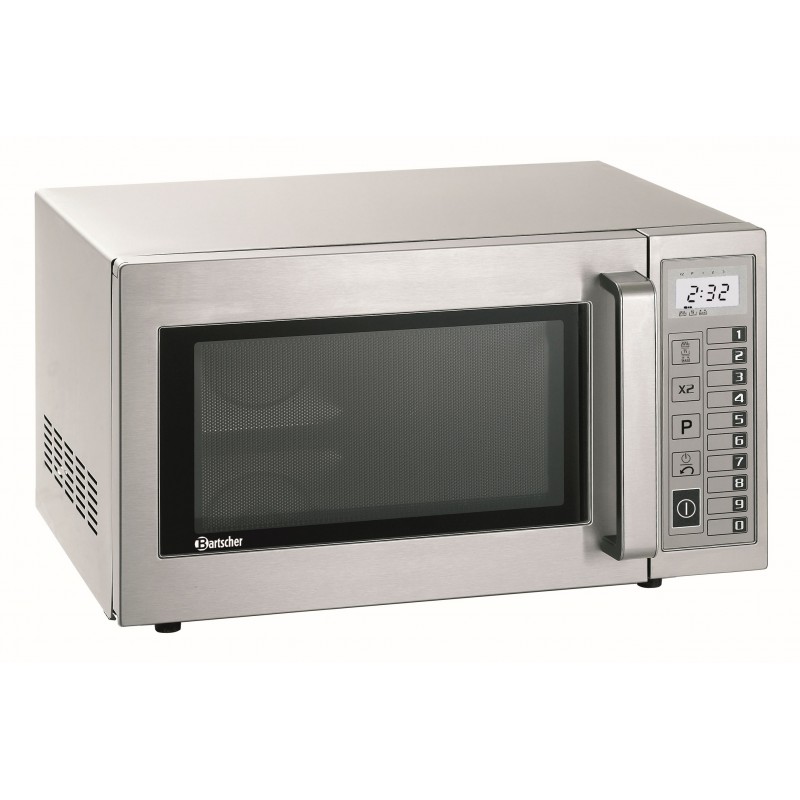 Behuizing en interieur van RVS Vermogen magnetron: 1000 W / 1 magnetron Capaciteit: 25 liter Vermogen instellingsmogelijkheden: 3 Digitale tijdsinstelling tot 99 minuten 20 instelbare programma's, ontdooifunctie Interieur: B 335 x D 360 x H 200 mm Exterieur: B 520 x D 440 x H 310 mm Vermogen: 1,5 kW / 230 V 50 Hz