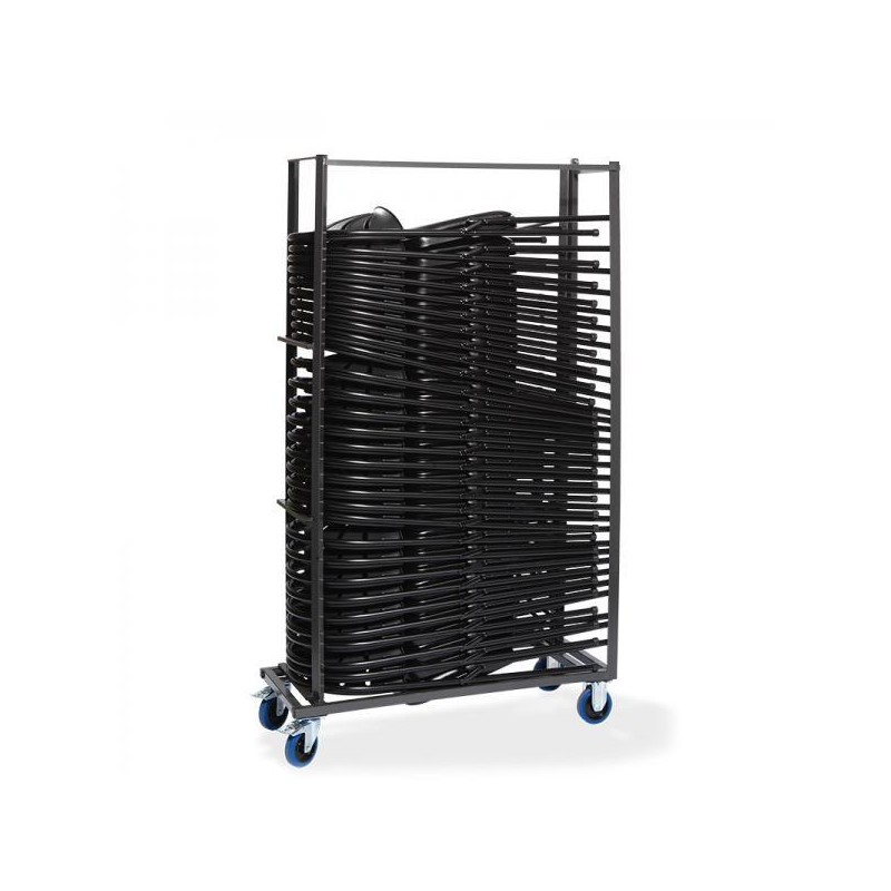 Deze trolley is speciaal ontworpen voor de deluxe stoelen (ook voor de Luxe Black). Op deze trolley passen maar liefst 35 stuks. De klapstoelen kunnen mooi in de hoogte worden gestapeld. De transportkar beschikt over 4 wielen: 2 blokwielen en 2 zwenkwielen met rem. De grootte van de wielen is 125 mm en zijn van het merk Torwegge.