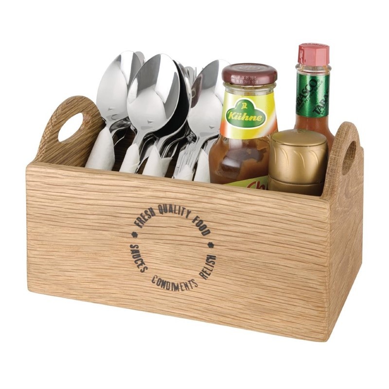 Olympia eikenhouten tafelcaddy voor bestek en specerijen