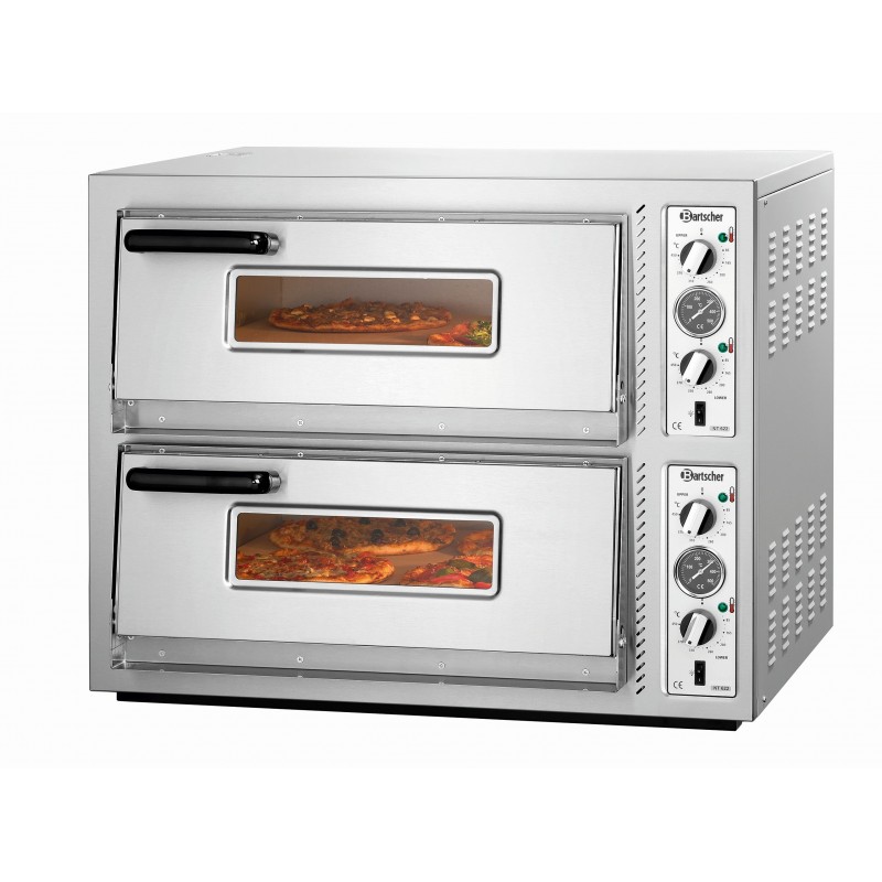 Ovenruimtes per stuk: B 605 x D 630 x H 140 mm Capaciteit: 2x 4 pizza's Ø 30 cm Temperatuur tot 450 °C Vermogen: 10 kW / 400 V 50 Hz 3 NAC Afmetingen: B 885 x D 790 x H 710 mm