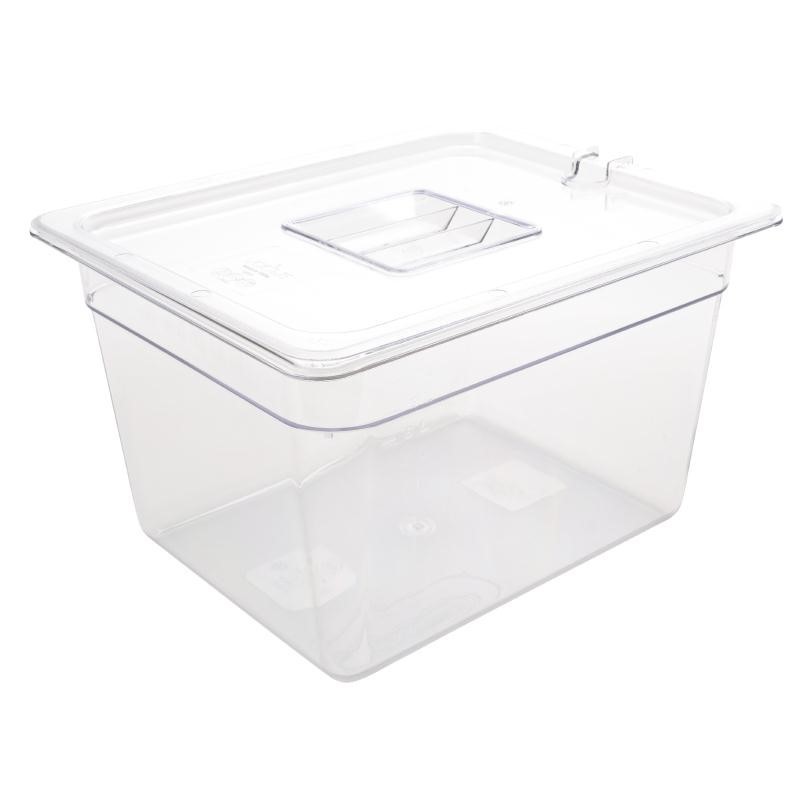 GN 1/2. Transparant. 200mm diep. Inhoud: 10,8 liter.Ontvanger :