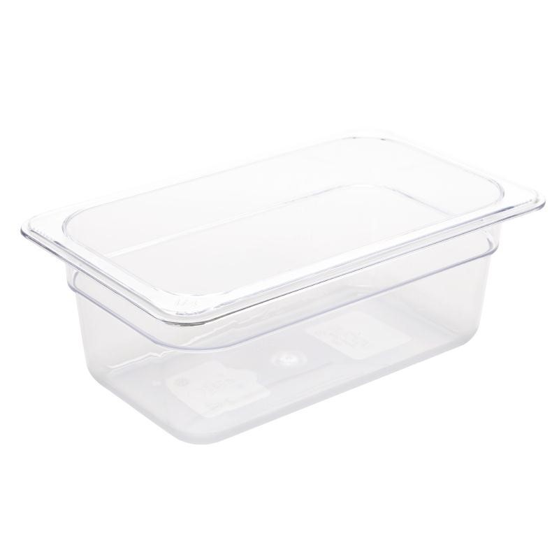 GN 1/4. Transparant. 100mm diep. Inhoud: 2,4 liter.Ontvanger :
