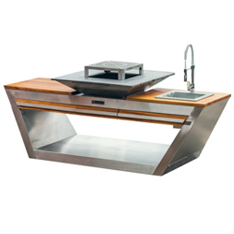 The Rolling Kitchen is een complete buitenkeuken op wielen. Uitgerust met een optionele wastafel en boiler voldoet hij aan alle behoeften van een outdoor-BBQ-kok. Er is voldoende ruimte voor voedselbereiding op een duurzaam granieten werkblad en een grote houtopslag eronder voor lange kooksessies. Gepositioneerd op wielen kan het gemakkelijk worden verplaatst.
